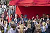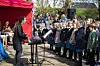 Bürgermeister Erik Lauritzen neben Prinzessin Benedikte, umringt von singenden Kindern der Förde-Schule