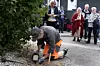 Ein Straßenarbeiter der Stadtverwaltung war die ganze Zeit dabei, um die Vergangenheit in die Straßen von Kolding zu verewigen.