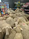 Schafe im Supermarkt - gekauft haben sie nichts.