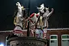 Das Traditionsfest Klaasohm auf Borkum endet mit dem Sprung der Klaasohms in die Menschenmenge von einer Säule im Zentrum des Orts.