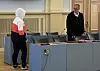 Die wegen Totschlags angeklagte Mutter betritt den Gerichtssaal.