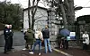 Polizisten stehen nach der Tat Wache am Schuleingang.