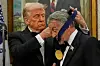 US-Präsident Donald Trump hängt der Actionfilm-Ikone Sylvester Stallone eine Medaille um.