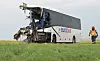 Von der Polizei veröffentlichte Bilder der Unfallstelle zeigten, dass der vordere Teil des Linienbusses völlig zertrümmert war. Der Lastwagen lag schwer beschädigt in einer Wiese neben der Landstraße.