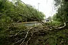 Umgestürzte Bäume nach starken Winden durch den Zyklon Jasper» an einer Straße in Cairns an der australischen Ostküste.