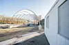 Zwei Reihen mit jeweils 15 Betonblöcken tragen 19 Metallbögen, die mit einer Zeltplane überspannt werden. Das ergibt einen 20 Meter langen Tunnel, der 10,8 Meter breit und 6,2 Meter hoch ist.