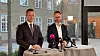 Thomas Danielsen (l.) und Claus Ruhe Madsen bei einer Pressekonferenz anlässlich des Besuches des Kieler Kabinetts in Kopenhagen