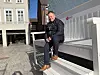 Citymanager Axel Nielsen auf der großen weißen Bank in der Innenstadt von Sonderburg. Er hält die Reform des Tourismusservice für einen Fehler und warnt, dass digitale Lösungen und Infospots den persönlichen Service der Touristinfo nicht ersetzen können.