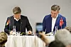 Klima-, Energie- und Versorgungsminister Lars Aagaard und Deutschlands Wirtschafts- und Klimaminister, Vizekanzler Robert Habeck, unterzeichnen die Erklärung für den Pipeline-Bau.
