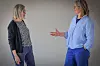 Die stellvertretende Vereinsvorsitzende Alice Juul im Gespräch mit ihrem Gast aus Kopenhagen: Die Künstlerin stellt zum ersten Mal in Hadersleben aus und hat sich akribisch darauf vorbereitet.
