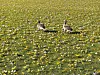 Dammpark Hadersleben: Graue Gänse auf bunter Wiese