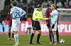 Simon Wæver im Gespräch mit Schiedsrichter Mikkel Redder.