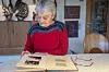 Erika Hallmann mit dem Familienfotoalbum ihres Vaters Rudolf Gimm. Der Lehrer und Fotograf dokumentierte in den 1930er- und 40er-Jahren das Leben der deutschen Volksgruppe in Nordschleswig.