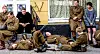 Endlich Pause! Schauspieler in historischen Uniformen drehen in Haderslebens Altstadt Szenen zu den Gefechten des 9. April 1940. Zu den Darstellern gehört auch Ari Alexander (2.v.r. hinten), Sohn der beiden langjährigen Møllen-Schauspieler Connie Tronbjerg und Klaus Weirup Andersen. Hier ist eine Szene am Mühlenplatz am heutigen Theater Møllen zu sehen.