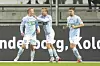 Alexander Lyng (Mitte) freut sich mit Kristall Mani Ingason (links) und Daniel Gretarsson über die frühe Sønderjyske-Führung gegen Fredericia.