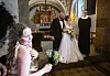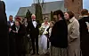 Großer Trubel vor der Kirche, als das Paar seine Gäste begrüßte