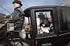 Ein Vierspänner wartete vor der Kirche auf die Frischvermählten.
