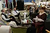 In großer Runde sitzen die Schauspielerinnen und Schauspieler im großen Raum hinter dem Bühnenvorhang zusammen. Dort sind auch die Garderoben, wo geschminkt wird und die Kostüme angezogen werden.