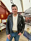Musiker AI Accident aus Göteborg mit seiner neu erstandenen Platte