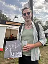 AI Accident, 40, Künstler und Festivalbesucher aus Göteborg, Schweden „Der Vater meiner Freundin kommt aus Tondern und ist mit den Organisatoren des Festivals befreundet. Für mich ist es das erste Jahr in Tondern. Ich finde es sehr cool hier, vor allem, weil es viele ganz besondere Musiker und Bands zu entdecken gibt. Ich komme aus dem Indie-Pop-Genre und seit drei Jahren bin ich sehr im Sythie-Pop der 80er Jahren engagiert. Ich mag das Konzept hier in Tondern sehr. Rund 50 Prozent originale irische Folkmusik und 50 Prozent Country, Amerikana und Raum für neue Musik. Es macht Spaß, Neues hier zu entdecken. Normalerweise ist es schwer, mich zu beeindrucken, aber hier habe ich Musik gehört, die mich umgehauen hat. Ich habe hier ein Lied gehört, Cod Liver Oil and the Orange Juice von The Mary Wallopers, das für mich das Beste seit Jahren ist. Ich habe sofort die Platte gekauft und will sie mir morgen unbedingt signieren lassen!“