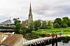 Nachdem wir die Anlage zur Hälfte umrundet haben, erblicken wir die St. Albans Church, unter Kopenhagenern als den Engelske Kirke bekannt. Versteckt hinter den Bäumen liegt das wiedererbaute Freiheitsmuseum, das wir uns für einen späteren Besuch vormerken.
