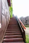 Auf einer anderen Treppe geht es wieder hinunter, und dann das Ganze noch einmal. Je nach Kondition könnt ihr das beliebig oft wiederholen – wir begnügen uns heute mit zwei Runden. Wer nur den Ausblick möchte, kann auch den Fahrstuhl benutzen.
