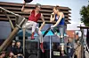 Das Seiltänzerduo „Cie Mauvais Coton“ aus Frankreich schloss die achttägige Vorführungsserie mit ihrem Auftritt am Süderstrand (Sønderstrand) ab.