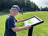 Auch die Holzständer, an denen die Gäste den Parcours erkennen, werden in der Werkstatt des Parks hergestellt. Hier im Bild steht Emil auf der Fußball-Golfbahn an Loch 1.