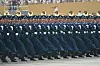 Soldaten der Volksbefreiungsarmee laufen bei einer Probe vor der großen Militärparade in Peking am Platz des Himmlischen Friedens vorbei.