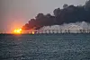 Flammen und Rauch steigen von der Krim-Brücke auf, die das russische Festland und die Halbinsel Krim über die Straße von Kertsch verbindet.