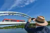 Ein Zug auf der Bahnbrücke über den Grenzfluss Oder zwischen dem polnischen Kostrzyn und auf deutscher Seite Küstrin-Kietz. Polen stellt das Fotografieren kritischer Infrastruktur unter Strafe, um sich besser vor Spionage zu schützen. (Archivbild)