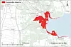 In Apenrade hat die Küstenbehörde die rot markierten Gebiet als gefährdet ausgewiesen.