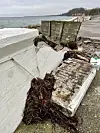 Einer von vielen Schäden an den Küsten der Kommune Sonderburg: Unter anderem die Außenmole des Hafens in Mummark ist durch die Sturmflut im Oktober 2023 vollkommen zerstört worden.