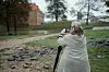 Weggeschwemmte Gehwegplatten und überschwemmte Schlosswiesen am Sonnabend in Sonderburg