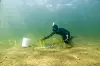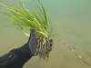 Ein Taucher pflanzt Seegras.