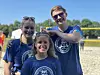 Johanna Wüst (l.), Julia Dietz und Marlon Florenz Schröder sind ein Team beim Beachvolleyballturnier auf dem Knivsbergfest 2025.