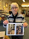 Else Egholm mit Bildern der Königin aus dem Jahr 1985. Die bald 86-Jährige hat das Lokalhistorische Archiv über 20 Jahre lang geleitet und die Königin dabei auch persönlich getroffen.