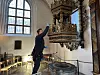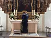 Martin Iwersen untersucht gründlichst den Altar nach verstecktem Sprengstoff ab.