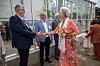 Bürgermeister Erik Lauritzen (l.) bei der Begrüßung