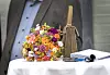 Der Blumenstrauß lag während der Legatsverteilung neben der Handtasche von Prinzessin Benedikte.