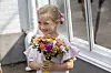 Blumenmädchen Ellen Dyrgaard vom lokalen Reitverein in Gravenstein überreichte der Prinzessin die Blumen zur Begrüßung.