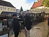 Spontaner Glückwunsch von einem Wähler aus Lügumkloster (Løgumkloster), als er Jørgen Popp Petersen auf dem Markt in Tondern entdeckt