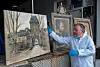Gemälderestaurator Dimitri Scher vor geretteten Werken.