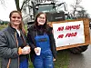 Ein Protestplakat an einem Traktor