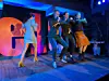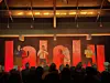 Lalelu, verkündete das flotte Bühnenbild – tolle und geschmackvolle Deko, dachte ich. Nur, dass dies gar nicht zur Bühnen-Ausstattung der Gruppe gehört. Die großen Buchstaben hat Hausmeister Sven Fröhlich von der Bücherei für Lalelu gemacht. Das Bühnenbild gibt es nur bei Shows in Nordschleswig.