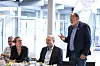 Jørn Lehmann Petersen (Sozialdemokraten, stehend) sprach sich ebenso wie der neben ihm sitzende Mads Skau (Venstre) sowie Dorte S. Madsen und Morten Weiss (ganz links) für mehr grenzüberschreitende Zusammenarbeit unter Einbeziehung der Region Süddänemark aus.