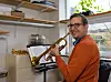 Er übt deshalb jeden Tag und verschmilzt mehr und mehr mit seinem Instrument, das tägliches Üben erfordert, wenn sich die Spielkunst mehr und mehr entfalten soll.