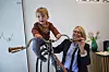 Stadtratsmitglied Christel Leiendecker von der Schleswigschen Partei half einem kleinen Jungen auf das alte sehr hohe Fahrrad.