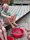 Eine wichtige Rolle spielt Wasser. Ob direkt aus dem Gartenschlauch, über den Rasensprenger oder in Eimern und Schüsseln: Das kühlende Nass wird viel eingesetzt. „Nicht nur zum Spielen, was die Kinder ja immer spannend finden, sondern vor allem auch zum Abkühlen“.