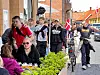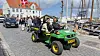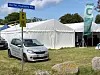 Ganz Allinge ist Teil des Folkemødes und wird ab Mittwochnachmittag zu großen Teilen für den Verkehr gesperrt. Noch ist es also gestattet, durch den Ort zu fahren. Es ist jedoch ratsam, einen Umweg zu wählen, denn von Fahren ist hier kaum noch die Rede. Überall versperren Lieferwagen und Lkws, von denen irgendetwas abgeladen wird, die Straße.